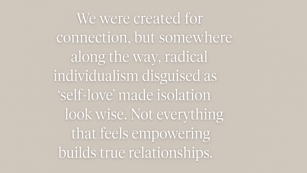 We weren’t meant to live alone. We were meant to live together. And when we do, we discover that true joy, true fulfillment, and true freedom are found not in individualism, but in love.