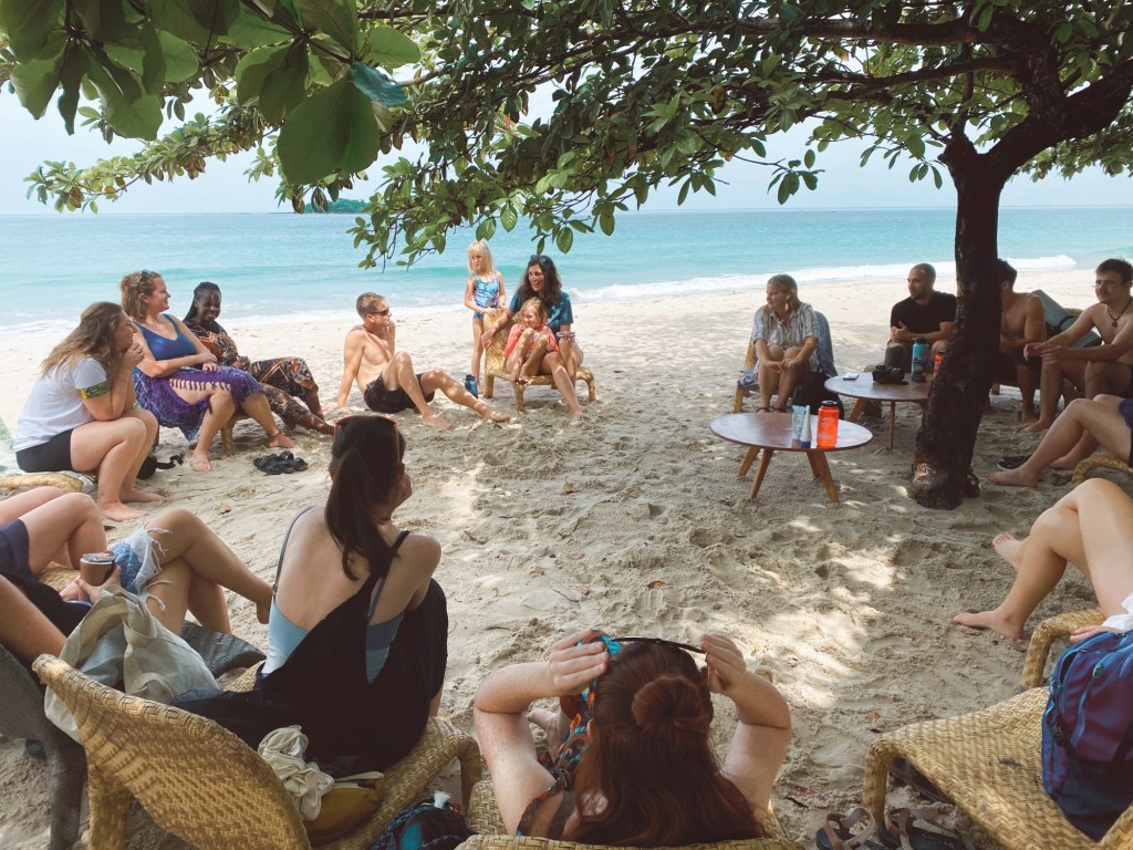 When I finished speaking, there was a silence. Not silence born of awkwardness, but the kind of reverent quiet that settles in when something sacred has just taken place. And then, slowly, gently, everyone began to gather around me. I sat on the warm sand, its heat grounding me, reminding me that I was fully here, fully present, fully alive. And then twenty-five sets of hands reached out, surrounding me in the most tender embrace. Some rested lightly on my shoulders, others on my back, my arms, my hands, each one like an anchor, a reminder that I wasn’t alone, that I was being held by community, by love, by the very body of Christ.