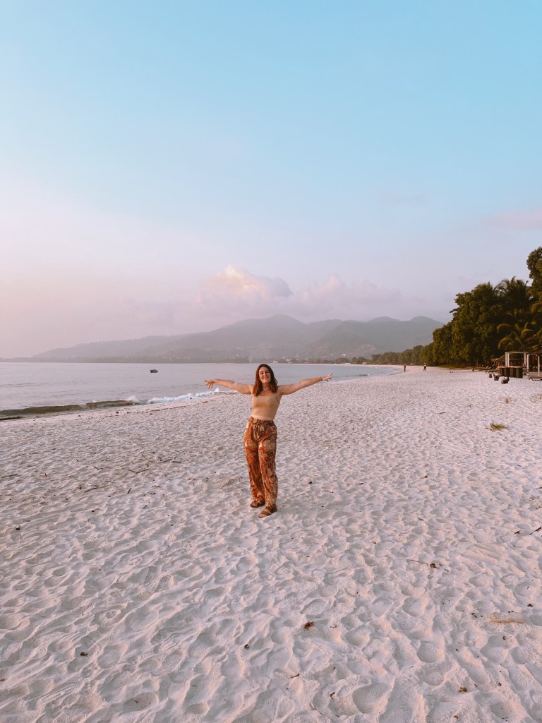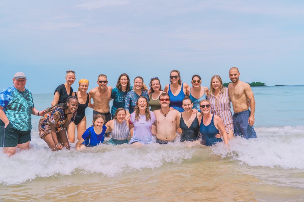 That morning, myself and about twenty-five of my closest friends from the ship piled into vans and made our way to Tokeh Beach. The drive itself was filled with a quiet, buzzing anticipation, laughter, music, a few people lost in thought, all of us carrying something tender in our hearts. Tokeh had always been a kind of refuge for me. A sanctuary. Just an hour outside the noisy heartbeat of Freetown, it felt like another world, untouched and peaceful. The soft, white sand hugged the shoreline like a gentle promise. Towering palms danced in the breeze, and lush green mountains watched over us like guardians. The ocean, vast and alive, seemed to breathe in rhythm with my soul. Over the past year, I’d spent so many weekends there, laughing until my stomach hurt, swimming in the warm waters, watching beautiful sunsets and sharing long conversations that nourished something deep in me. Tokeh had already cradled so many of my memories, but that day was different.